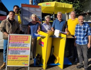 Neben Luftballons, Fähnchen und Windrädchen für die Kinder gab es Flyer mit vielen Infos über Hochberg ( hier 250920 InfoStandFlyer HB komplett ) für die Erwachsenen. Auch Unterschriften gegen einen drohenden XXL Landtag wurden gesammelt beim Bürgerbegehren: „XXL Landtag verhindern“.