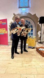 Oberbürgermeister Dirk Schönberger attestierte daher der FDP Remseck bei seinem Grußwort, dass die Liberalen vor Ort „streitbar“ seien, was wir gerne als Lob aus seinem Munde verstanden haben. Gastredner Hans-Ulrich Rülke, FDP-Spitzenkandidat zur Landtagswahl, stellte in seiner Rede eine für Remseck wichtige Perspektive heraus: In ihrem Landtagswahlprogramm fordert die FDP die Zusammenführung des Wirtschafts- und Verkehrsministeriums zu einem Infrastrukturministerium, da die Schwächen der Infrastruktur bei uns zu Schwächen der Wirtschaft insbesondere in der industriell geprägten Region Stuttgart führen. Kai Buschmann erinnerte Rülke daran, dass er als Geschenk beim letzten Besuch in Remseck die Maffay-CD „Über sieben Brücken musst du gehn“ erhalten habe. Remseck habe mit allen Rohrbrücken sechs Neckarbrücken, benötige aber eine weitere „siebte Brücke“ zwischen Aldingen und Mühlhausen, um den Durchgangsverkehr aus der Stadtmitte zu bekommen. Rülke bekannte sich zum Projekt „Grüner Tunnel“ von Dr. Rüdiger Stihl mit einer „siebten Brücke“ oder einen Neckartunnel. Insofern hat die Landtagswahl 2026 hohe kommunale Bedeutung für Remseck, denn durch den Wahlsieg der Grünen bei der Wahl 2011 wurde das Projekt einer stadtmittefernen Umfahrung gestoppt und Remseck droht seitdem dauerhaft durch den Durchgangsverkehr blockiert zu werden. Sehr schön war, dass am Abend sehr viele Weggefährten aus fünf Jahrzehnten anwesend waren. So konnte Werner Kuhn als letztes Gemeindeoberhaupt des selbständigen Hochberg 1973/74 und späterer FDP-Kreisrat direkt von der schwierigen Gründungsphase Remsecks berichten. Sehr erfreulich war auch, dass alle Parteien im Gemeinderat und die Freien Wähler durch Vertreter beim Festakt präsent waren. Ein Zeichen für eine „streitbare“ aber respektvolle politische Kultur.