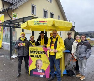Bis zur Wahl am 08.03.2026, bei der es gilt, einen Politikwechsel herbeizuführen und deshalb beide Stimmen der FDP gelten sollten, werden die FDP Remseck Wahlkämpfer noch 12 x per Infostand vor Ort sein.