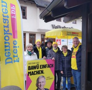 Am Samstag, 21.02.2026, 07:30 – 09:30 Uhr – war die Remsecker FDP zusammen mit dem Erstkandidaten der FDP für den Wahlkreis Ludwigsburg, Wolfgang Vogt, auf dem Wilhelmsplatz in Hochdorf.