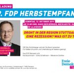 19. Herbstempfang mit IHK Hauptgeschäftsführer Beschäftigte sich die 18. traditionelle Herbstveranstaltung der FDP Remseck 2018 mit dem Thema „Sicherheit und Rettung in Remseck“, so werden wir uns dieses Jahr schwerpunktmäßig mit dem Thema „Wirtschaft, Gewerbe und Konjunktur“ beschäft